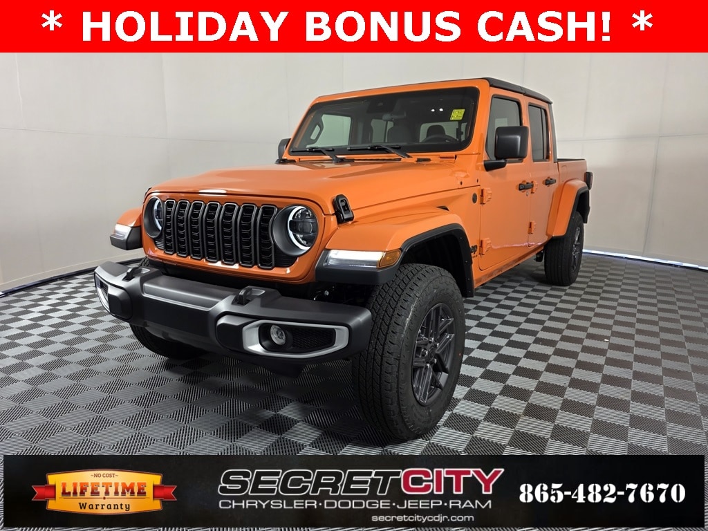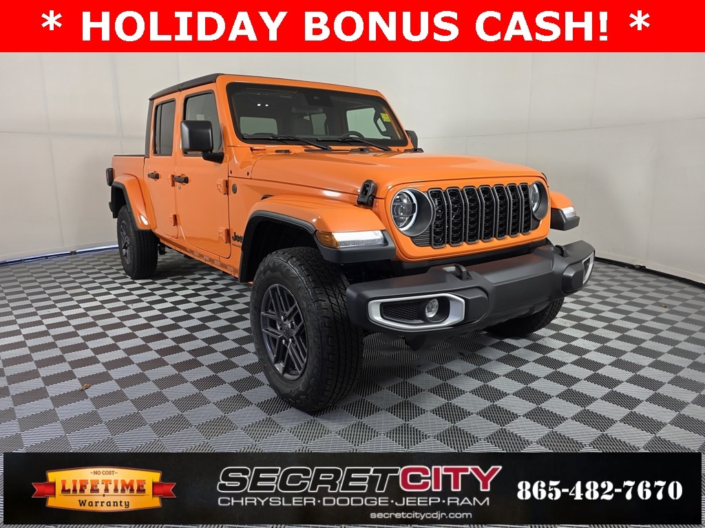 2025 Jeep Gladiator Sport 3.6L V6 24V VVT 4WD 8-Speed Automatic Backup Camera, Bluetooth, Life Time Powertrain Warranty, 110 MPH Vehicle Max Speed Calibration, 12.3" Touchscreen Display, 4.10 Rear Axle Ratio, Advanced Brake Assist, Anti-Spin Differential Rear Axle, Apple CarPlay/Android Auto, Automatic Headlamps, Black Molded-In-Color Fender Flares (2-Piece), Class IV Receiver Hitch, Convenience Group, Conventional Differential Front Axle, Corning Gorilla Glass, Dana M210 Wide Front Axle, Dana M220 Wide Rear Axle, Daytime Running Lamp System, Daytime Running Lamps LED Accents, Deep Tint Sunscreen Windows, Emergency/Assistance Call, Enhanced Adaptive Cruise Control, Front Door Locks 2-Door Passive Entry, Front LED Fog Lamps, Full Speed Forward Collision Warning Plus, Heated Front Seats, Heated Steering Wheel, Heavy-Duty Engine Cooling, LED Headlamp & Fog Lamp Group, LED Premium Reflector Headlamps, Max Tow Package w/4.10 Axle Ratio, Normal Duty Plus Suspension, Power Heated Mirrors, Premium Wrapped Steering Wheel, Quick Order Package 24S Sport S, Radio: Uconnect 5 w/12.3" Display, Remote Start System, Security Alarm, Sun Visors w/Illuminated Vanity Mirrors, Universal Garage Door Opener, Wheels: 17" x 7.5" Gray.