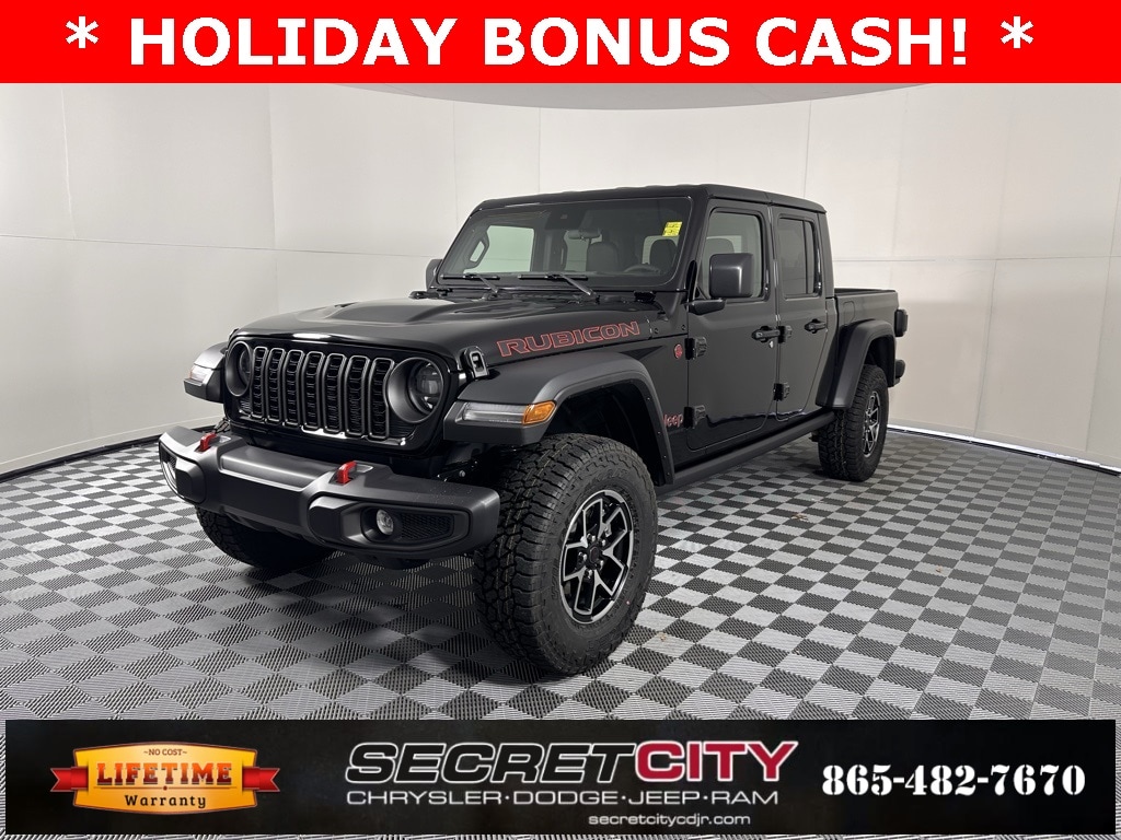 2025 Jeep Gladiator Rubicon 3.6L V6 24V VVT 4WD 8-Speed Automatic Backup Camera, Bluetooth, Life Time Powertrain Warranty, 12.3" Touchscreen Display, Apple CarPlay/Android Auto, Convenience Group, Emergency communication system: Jeep Connect, Heated Front Seats, Heated Steering Wheel, MOPAR Spray In Bedliner, Quick Order Package 24R Rubicon, Radio: Uconnect 5 w/12.3" Display, Remote Start System, SiriusXM Radio Service, SiriusXM w/360L, Steering wheel mounted audio controls, Universal Garage Door Opener, Wheels: 17" x 7.5" Machined/Painted Black.