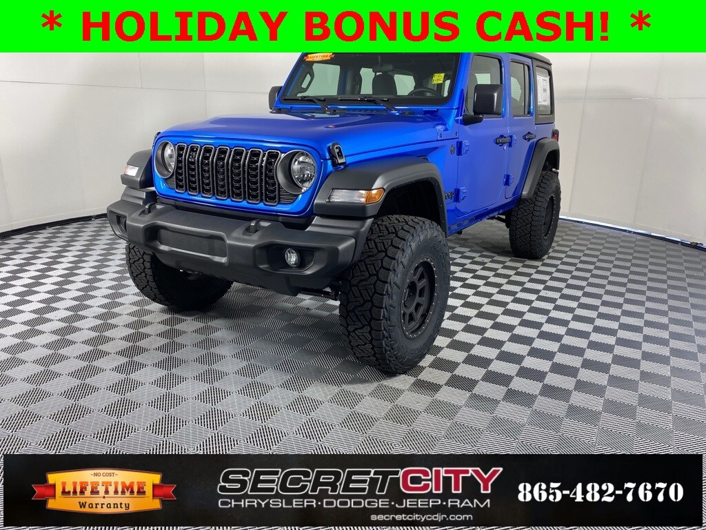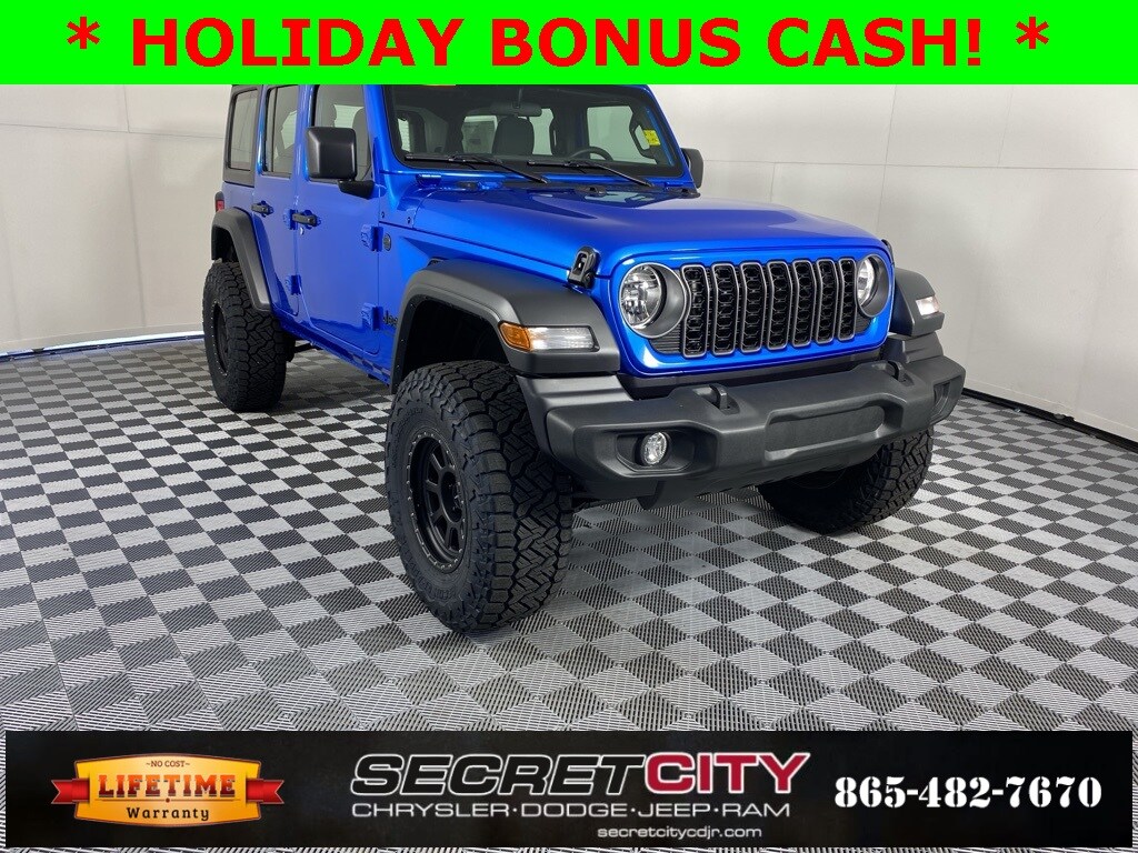 2025 Jeep Wrangler Sport 2.0L I4 DOHC 4WD 8-Speed Automatic Backup Camera, Bluetooth, Apple CarPlay / Android Auto, Life Time Powertrain Warranty, AM/FM radio: SiriusXM, Apple CarPlay/Android Auto, Quick Order Package 22B Sport, Radio: Uconnect 5 w/12.3" Display, Steering wheel mounted audio controls.