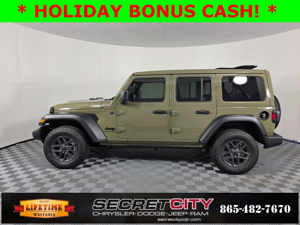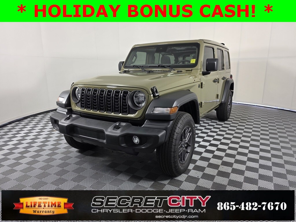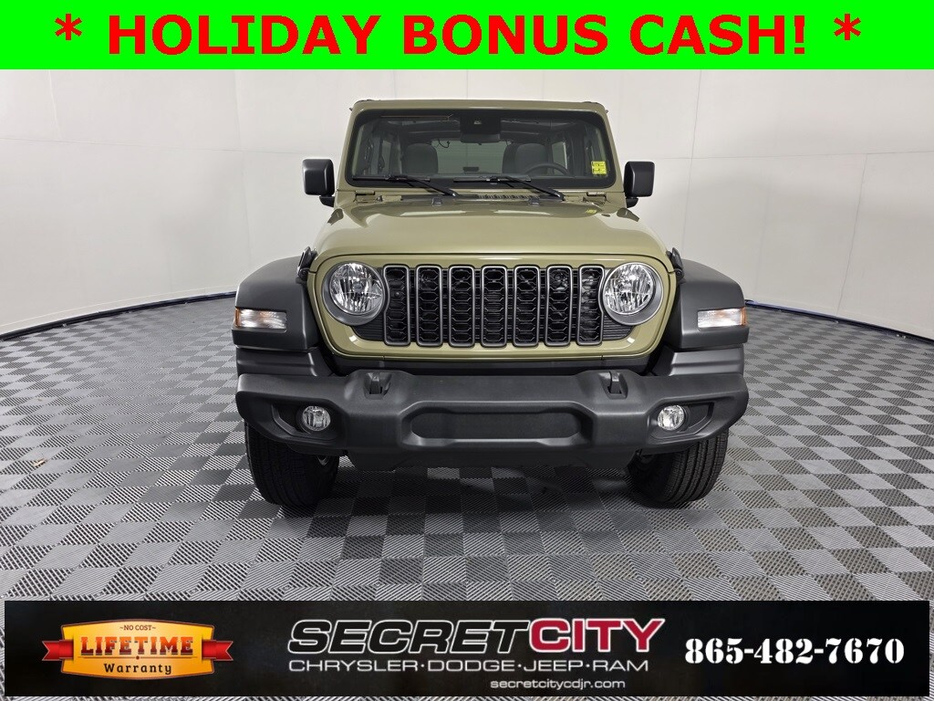2025 Jeep Wrangler Sport S 3.6L V6 24V VVT 4WD 8-Speed Automatic Backup Camera, Bluetooth, Apple CarPlay / Android Auto, Life Time Powertrain Warranty, 2-Door Passive Entry, Front Door Locks, Advanced Brake Assist, Air Conditioning w/Auto Temperature Control, Air Filtering, Apple CarPlay/Android Auto, Automatic Headlamps, Cluster 7.0" TFT Color Display, Convenience Group, Corning Gorilla Glass, Deep Tint Sunscreen Windows, Emergency/Assistance Call, Enhanced Adaptive Cruise Control, Full Speed Forward Collision Warning Plus, Heated Front Seats, Heated Steering Wheel, Power Heated Mirrors, Power Top Quarter Window Storage Bag, Premium Wrapped Steering Wheel, Quick Order Package 24S Sport S, Radio: Uconnect 5 w/12.3" Display, Rear Window Defroster, Rear Window Wiper/Washer, Remote Start System, Removable Rear Quarter Windows, Security Alarm, Sky 1-Touch Power Top, Sun Visors w/Illuminated Vanity Mirrors, Universal Garage Door Opener, Wheels: 17" x 7.5" Gray.