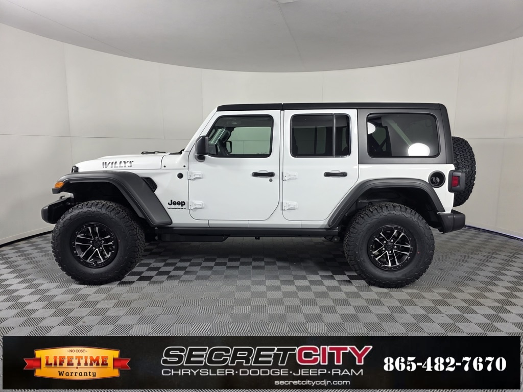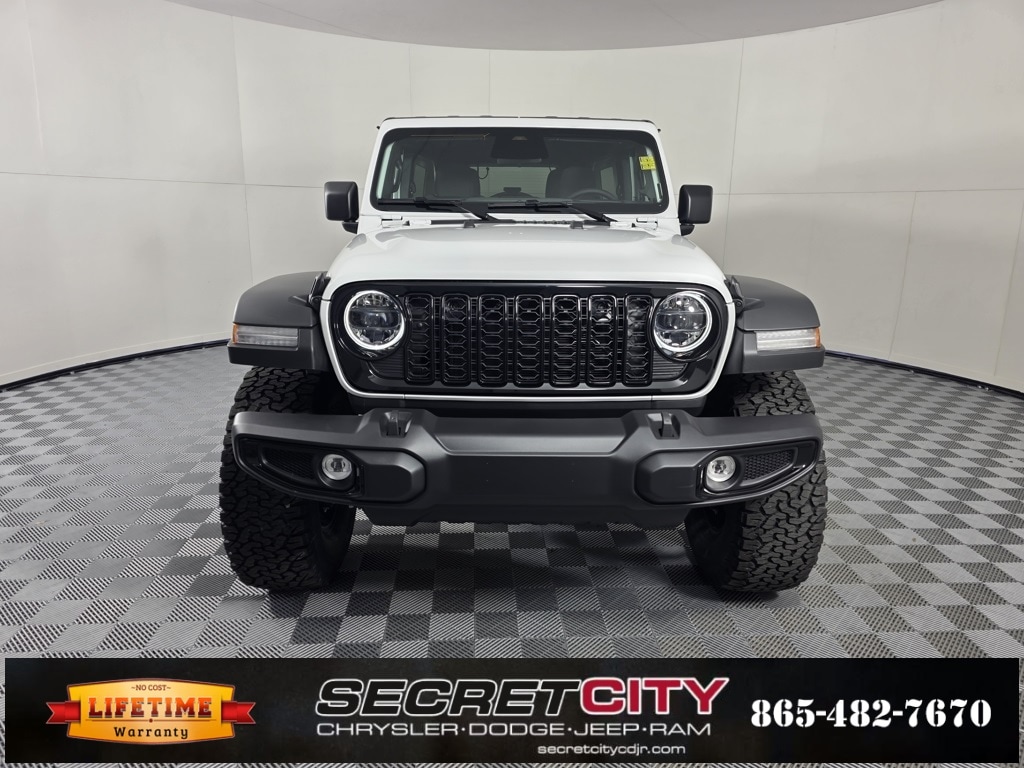 2026 Jeep Wrangler Willys 2.0L I4 DOHC 4WD 8-Speed Automatic Backup Camera, Bluetooth, Apple CarPlay / Android Auto, Life Time Powertrain Warranty, 12.3" Touchscreen Display, 35" Tire Suspension, 4-Wheel Drive Swing Gate Decal, 4.56 Rear Axle Ratio, 7 and 4 Pin Wiring Harness, Advanced Brake Assist, AM/FM radio: SiriusXM with 360L, Anti-Lock 4-Wheel Disc Perf Brakes, Apple CarPlay/Android Auto, Automatic Headlamps, Auxiliary Switches, Black Grille, Class II Receiver Hitch, Conventional Differential Front Axle, Corning Gorilla Glass, Dana M210 Wide HD Tube Front Axle, Dana M220 Wide Rear Axle, Daytime Running Lamps LED Accents, Deep Tint Sunscreen Windows, E-Locker Rear Axle, Enhanced Adaptive Cruise Control, Front LED Fog Lamps, Full Speed Forward Collision Warning Plus, Injection Molded Black Rear Bumper, LED Premium Reflector Headlamps, Mold in Color Bumper with Gloss Black, Molded in Color Rubicon Highline Flare, MOPAR All-Weather Floor Mats, MOPAR Hinge-Gate Reinforcement, MOPAR Jack Spacer, MOPAR Tire Relocation Kit, Off-Road Plus Mode, Power Heated Mirrors, Premium Wrapped Steering Wheel, Quick Order Package 22W Willys, Radio: Uconnect 5 with 12.3" Display, Security Alarm, SiriusXM with 360L, Sun Visors with Illuminated Vanity Mirrors, Wheel Flare Extensions, Wheels: 17" x 7.5" Painted Black, Wheels: 17" x 8" Machined with Black Pockets, Willy's Suspension, Willys Hood Decal, Xtreme 35 Tire Package.