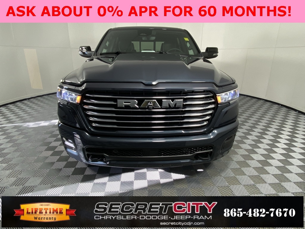 2026 Ram 1500 Laramie HEMI 5.7L V8 Multi Displacement VVT eTorque 4WD 8-Speed Automatic Backup Camera, Bluetooth, Sunroof/Moonroof, Navigation, Apple CarPlay / Android Auto, Life Time Powertrain Warranty, 14.4" Touchscreen Display, 4G LTE Wi-Fi Hot Spot, Accent Color Premium Power Mirrors, Apple CarPlay/Android Auto, Auto High-beam Headlights, Auto Power-Folding Mirrors, Auto-Dimming Exterior Driver Mirror, Bed Utility Group, Black Painted Exterior Mirrors Caps, Body Color Front Bumper, Body Color Rear Bumper w/Step Pads, Cluster 12" TFT Color Display, Connected Travel & Traffic Services, Connectivity - US/Canada, Convex Wide-Angle Exterior Mirror Insert, Dome Dual LED Reading Lamp, Dual-Pane Panoramic Sunroof, Exterior 115V AC Outlet, Exterior Mirrors Courtesy Lamps, Exterior Mirrors w/Heating Element, Exterior Mirrors w/Memory, Exterior Mirrors w/Supplemental Signals, Front Passenger Interactive Display, GPS Navigation, Grille Surround 3 Body Color Tex 4 Chrome, harman/kardon 19 Speaker Premium Sound, Heated front seats, Heated rear seats, Heated steering wheel, Integrated Center Stack Radio, Integrated Voice Command w/Bluetooth, Laramie Level 2 Equipment Group, Laramie Preferred Package, LED Dome/Reading Lamp, Memory seat, MOPAR 4 Adjustable Cargo Tie-Down Hooks, MOPAR Spray In Bedliner, Power Deployable Running Boards, Power Tailgate, Quick Order Package 27H Laramie, Radio: Uconnect 5 Nav w/14.4" Display, Rain Sensitive Windshield Wipers, RAM Grille Badge - Chrome, SiriusXM Radio Service, SiriusXM w/360L, Steering wheel mounted audio controls, Tow Hooks, Trailer Brake Control, USB Host Flip, Ventilated front seats, Wheels: 20" x 9" Premium Paint/Polish.