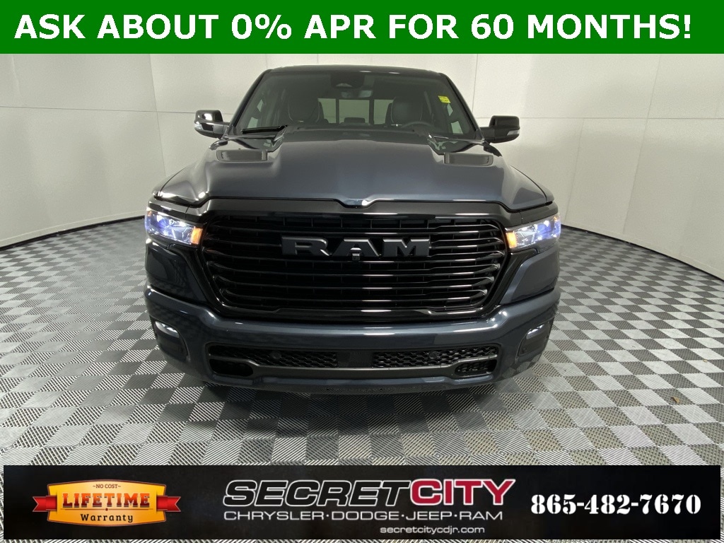 2026 Ram 1500 Laramie HEMI 5.7L V8 Multi Displacement VVT eTorque 4WD 8-Speed Automatic Backup Camera, Bluetooth, Sunroof/Moonroof, Navigation, Apple CarPlay / Android Auto, Life Time Powertrain Warranty, 14.4" Touchscreen Display, 4G LTE Wi-Fi Hot Spot, Accent Color Door Handles, Accent Color Premium Power Mirrors, Accent Color Tailgate Handle, Anti-Spin Differential Rear Axle, Apple CarPlay/Android Auto, Auto High-beam Headlights, Auto Power-Folding Mirrors, Auto-Dimming Exterior Driver Mirror, Bed Utility Group, Black Exterior Truck Badging, Black Headlamp Bezels, Black Interior Accents, Black Painted Exterior Mirrors Caps, Black Tail Lamp Bezels, Body Color Front Bumper, Body Color Rear Bumper with Step Pads, Cluster 12" TFT Color Display, Connected Travel and Traffic Services, Connectivity - US/Canada, Convex Wide-Angle Exterior Mirror Insert, Dome Dual LED Reading Lamp, Dual Exhaust with Black Tips, Dual-Pane Panoramic Sunroof, Exterior 115V AC Outlet, Exterior Mirrors Approach Lamps, Exterior Mirrors Courtesy Lamps, Exterior Mirrors with Heating Element, Exterior Mirrors with Memory, Exterior Mirrors with Supplemental Signals, Front Passenger Interactive Display, GPS Navigation, Grille Surround 3 Black Texture 2 Black, Harman/Kardon 19 Speaker Premium Sound, Heated door mirrors, Heated front seats, Heated rear seats, Heated steering wheel, Integrated Center Stack Radio, Integrated Voice Command with Bluetooth, Laramie Level 2 Equipment Group, Leather Trimmed Bucket Seats, LED Dome/Reading Lamp, MOPAR 4 Adjustable Cargo Tie-Down Hooks, MOPAR Spray in Bedliner, Night Edition, Pirelli Brand Tires, Power Tailgate, Proximity Approach/Departure Lamps, Quick Order Package 27H Laramie, Radio: Uconnect 5 Nav with 14.4" Display, Rain Sensitive Windshield Wipers, RAM Grille Badge - Black, SiriusXM Radio Service, SiriusXM with 360L, Sport Performance Hood, Steering wheel mounted audio controls, Trailer Brake Control, Turn signal indicator mirrors, USB Host Flip, Ventilated front seats, Wheels: 22" x 9" Forged Aluminum.