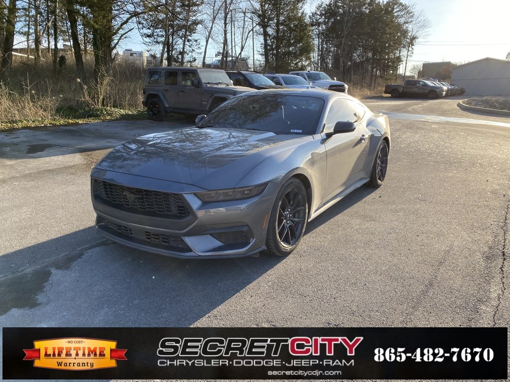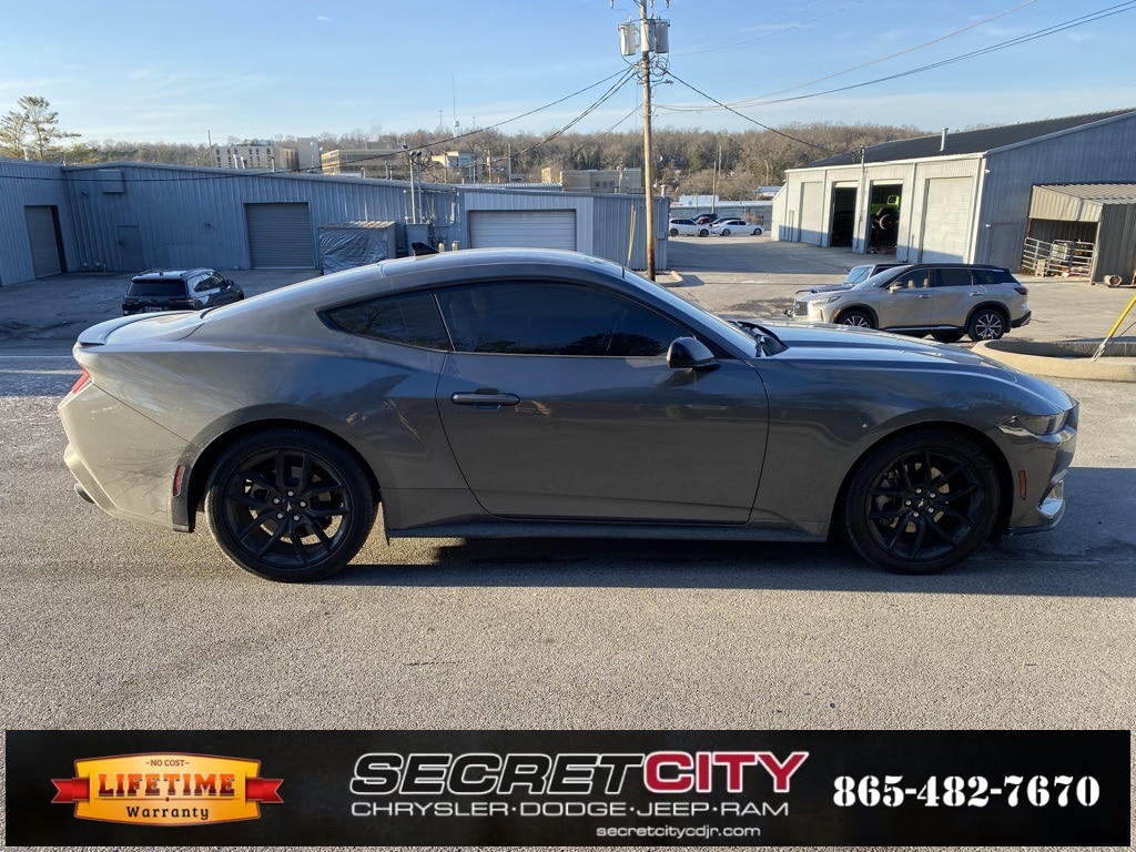 2024 Ford Mustang EcoBoost 4-Wheel Disc Brakes, ABS brakes, Air Conditioning, Alloy wheels, AM/FM Stereo, Auto High-beam Headlights, Automatic temperature control, Black Front & Rear Pony Badges, Black Mirror Caps, Brake assist, Bumpers: body-color, Compass, Delay-off headlights, Driver door bin, Driver vanity mirror, Dual front impact airbags, Dual front side impact airbags, Electronic Stability Control, Emergency communication system: 911 Assist, Exterior Parking Camera Rear, Four wheel independent suspension, Front anti-roll bar, Front Bucket Seats, Front Center Armrest, Front reading lights, Fully automatic headlights, Headlamps w/Black Bezels, Illuminated entry, Knee airbag, Leather Shift Knob, Low tire pressure warning, Mustang Nite Pony Package, Occupant sensing airbag, Outside temperature display, Overhead airbag, Overhead console, Painted Black Roof, Panic alarm, Passenger door bin, Passenger vanity mirror, Power door mirrors, Power steering, Power windows, Radio data system, Rain sensing wipers, Rear anti-roll bar, Rear Parking Sensors, Rear window defroster, Remote keyless entry, Shadow Black Blade Decklid Spoiler, Speed control, Speed-sensing steering, Speed-Sensitive Wipers, Split folding rear seat, Sport steering wheel, Steering wheel mounted audio controls, SYNC 4.0 QNX, Tachometer, Telescoping steering wheel, Tilt steering wheel, Traction control, Trip computer, Variably intermittent wipers, Voltmeter, Wheels: 18" x 8" Machined-Face Aluminum, Wheels: 19" x 8.5" Ebony Black-Painted Aluminum.