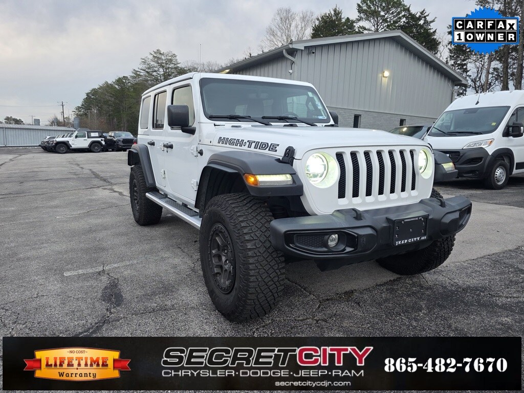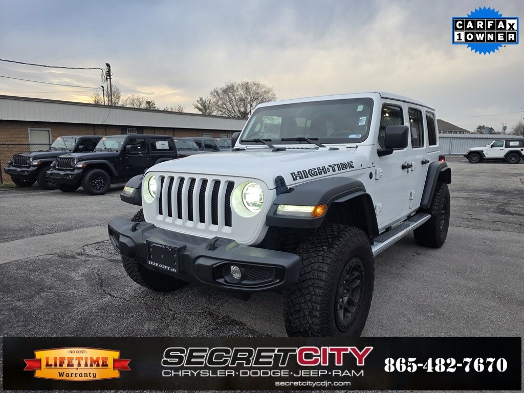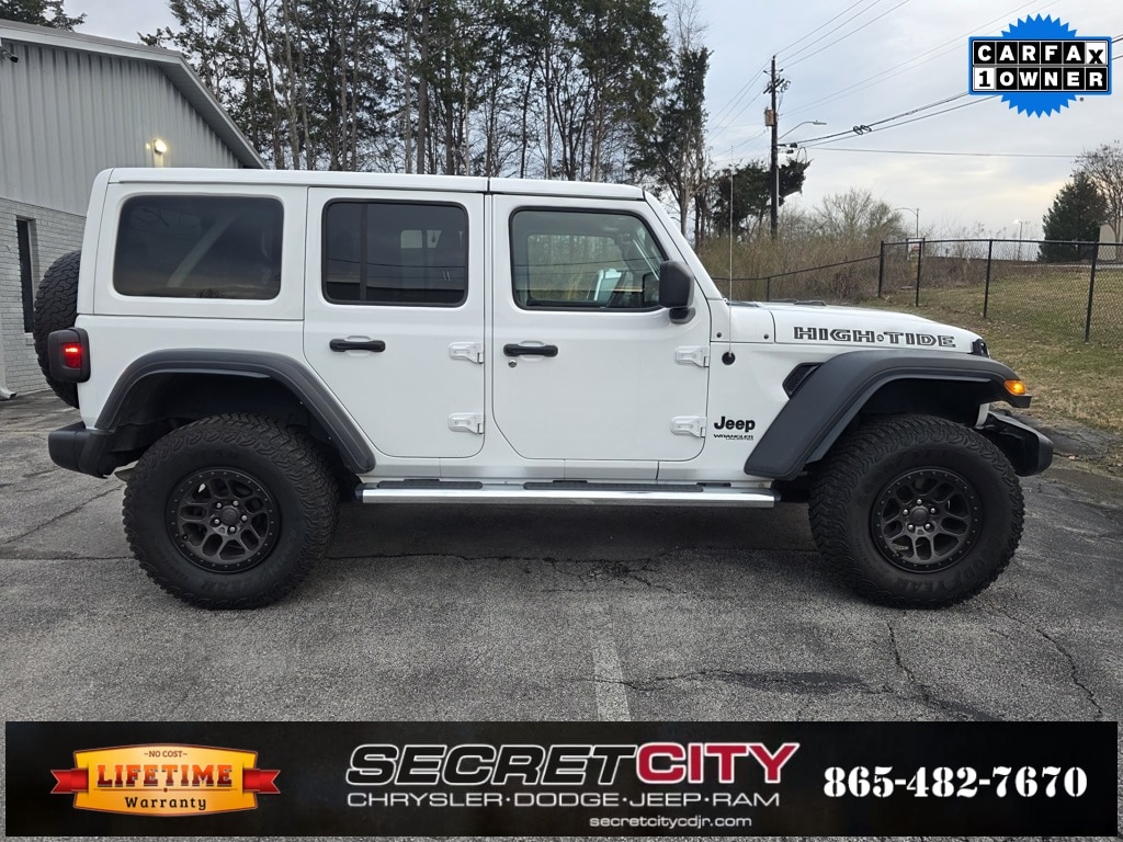 2022 Jeep Wrangler Unlimited High Tide 1-Year SiriusXM Guardian Trial, 110 MPH Vehicle Max Speed Calibration, 2-Door Passive Entry, Front Door Locks, 220 Amp Alternator, 35" Tire Suspension, 4-Wheel Disc Brakes, 4.56 Rear Axle Ratio, 4G LTE Wi-Fi Hot Spot, 5-Year SiriusXM Traffic Service, 5-Year SiriusXM Travel Link Service, 8 Speakers, 8.4" Radio & Premium Audio Group, 8.4" Touchscreen Display, 97 MPH Vehicle Max Speed Calibration, ABS brakes, Air Conditioning, Air Conditioning w/Auto Temperature Control, Air Filtering, Alpine Premium Audio System, AM/FM radio, Anti-Lock 4-Wheel Disc Perf Brakes, Anti-Spin Differential Rear Axle, Apple CarPlay/Android Auto, Auto-Dimming Rear-View Mirror, Automatic Headlamps, Aux Battery, BF Goodrich Brand Tires, Black Trail Rated Badge, Body Color 3-Piece Hard Top, Brake assist, Cloth Low-Back Bucket Seats, Cluster 7.0" TFT Color Display, Cold Weather Group, Compass, Convenience Group, Corning Gorilla Glass, Dana M210 Wide HD Tube Front Axle, Dana M220 Wide Rear Axle, Deep Tint Sunscreen Windows, Delay-off headlights, Driver door bin, Driver vanity mirror, Dual front impact airbags, Dual front side impact airbags, Electronic Stability Control, Emergency communication system: SiriusXM Guardian, Emergency/Assistance Call, Engine Oil Cooler, Freedom Panel Storage Bag, Front 1-Touch Down Power Windows, Front anti-roll bar, Front Bucket Seats, Front Center Armrest w/Storage, Front fog lights, Front LED Fog Lamps, Front reading lights, GPS Navigation, HD Radio, Heated Front Seats, Heated Steering Wheel, High Tide Hood Decal, High Tide Package, Injection Molded Black Rear Bumper, Integrated roll-over protection, Jeep Trail Rated Kit, Leather Wrapped Steering Wheel, LED Headlamp & Fog Lamp Group, LED Premium Reflector Headlamps, Low tire pressure warning, Manufacturer's Statement of Origin, Matte Black Jeep Badge, Mid Model Year Vehicle Tracking (DISC), Mold In Color Bumper w/Gloss Black, Molded in Color Rubicon Highline Flare, MOPAR All-Weather Floor Mats, MOPAR Hinge-Gate Reinforcement, MOPAR Sunrider For Hardtop, No Soft Top, Non-Lock Fuel Cap w/o Discriminator, Normal Duty Suspension, Occupant sensing airbag, Off-Road Info Pages, Outside temperature display, ParkView Rear Back-Up Camera, Passenger door bin, Passenger vanity mirror, Power Heated Mirrors, Power steering, Quick Order Package 25D High Tide, Radio data system, Radio: Uconnect 4 w/7" Display, Radio: Uconnect 4C Nav w/8.4" Display, Rear anti-roll bar, Rear reading lights, Rear Window Defroster, Rear Window Wiper/Washer, Remote Keyless Entry, Security Alarm, SiriusXM Radio Service, SiriusXM Satellite Radio, SiriusXM Traffic Plus, SiriusXM Travel Link, Speed control, Speed Sensitive Power Locks, Split folding rear seat, Steering wheel mounted audio controls, Stop-Start Dual Battery System, Sun Visors w/Illuminated Vanity Mirrors, Tachometer, Technology Group, Telescoping steering wheel, Tilt steering wheel, Traction control, Trip computer, Universal Garage Door Opener, Variably intermittent wipers, Wheel Flare Extensions, Wheels: 17" x 7.5" Black Steel Styled, Wheels: 17" x 8" Beadlock Capable, Xtreme Recon 35" Tire Package.