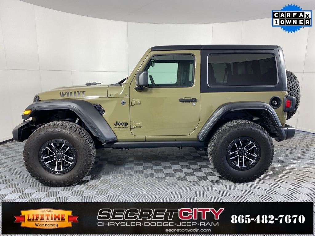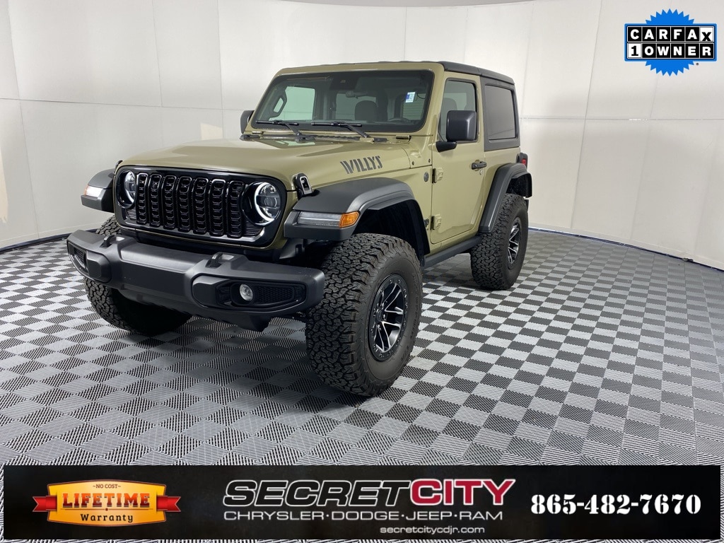 2025 Jeep Wrangler Willys Backup Camera, Bluetooth, Apple CarPlay / Android Auto, Life Time Powertrain Warranty, 2-Door Passive Entry, Front Door Locks, 35" Tire Suspension, 4-Wheel Drive Swing Gate Decal, 4.56 Rear Axle Ratio, Advanced Brake Assist, Air Conditioning w/Auto Temperature Control, Air Filtering, Alpine Premium Audio System, Apple CarPlay/Android Auto, Automatic Headlamps, Black Grille, Cluster 7.0" TFT Color Display, Convenience Group, Conventional Differential Front Axle, Corning Gorilla Glass, Dana M210 Wide HD Tube Front Axle, Dana M220 Wide Full Floating Rear Axle, Dana M220 Wide Rear Axle, Daytime Running Lamps LED Accents, Deep Tint Sunscreen Windows, E-Locker Rear Axle, Emergency/Assistance Call, Enhanced Adaptive Cruise Control, Front LED Fog Lamps, Full Speed Forward Collision Warning Plus, Heated Front Seats, Heated Steering Wheel, Injection Molded Black Rear Bumper, LED Premium Reflector Headlamps, Mold In Color Bumper w/Gloss Black, Molded in Color Rubicon Highline Flare, MOPAR All-Weather Floor Mats, MOPAR Hinge-Gate Reinforcement, MOPAR Jack Spacer, MOPAR Tire Relocation Kit, Off-Road Plus Mode, Power Heated Mirrors, Premium Wrapped Steering Wheel, Quick Order Package 22W Willys, Radio data system, Radio: Uconnect 5 w/12.3" Display, Remote Start System, Security Alarm, Sun Visors w/Illuminated Vanity Mirrors, Technology Group (DISC), Universal Garage Door Opener, Wheel Flare Extensions, Wheels: 17" x 8" Machined w/Black Pockets, Willy's Suspension, Willys Hood Decal, Xtreme 35 Tire Package.